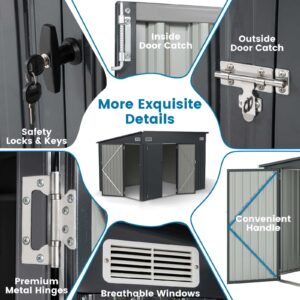 Heavy-duty Structure: Reinforced with galvanized steel panels and an anti-collision cover, this sturdy storage shed ensures the safety and security of your belongings. Moreover, the stable frame, along with reinforced triangle anchors, offers unmatched durability and stability.