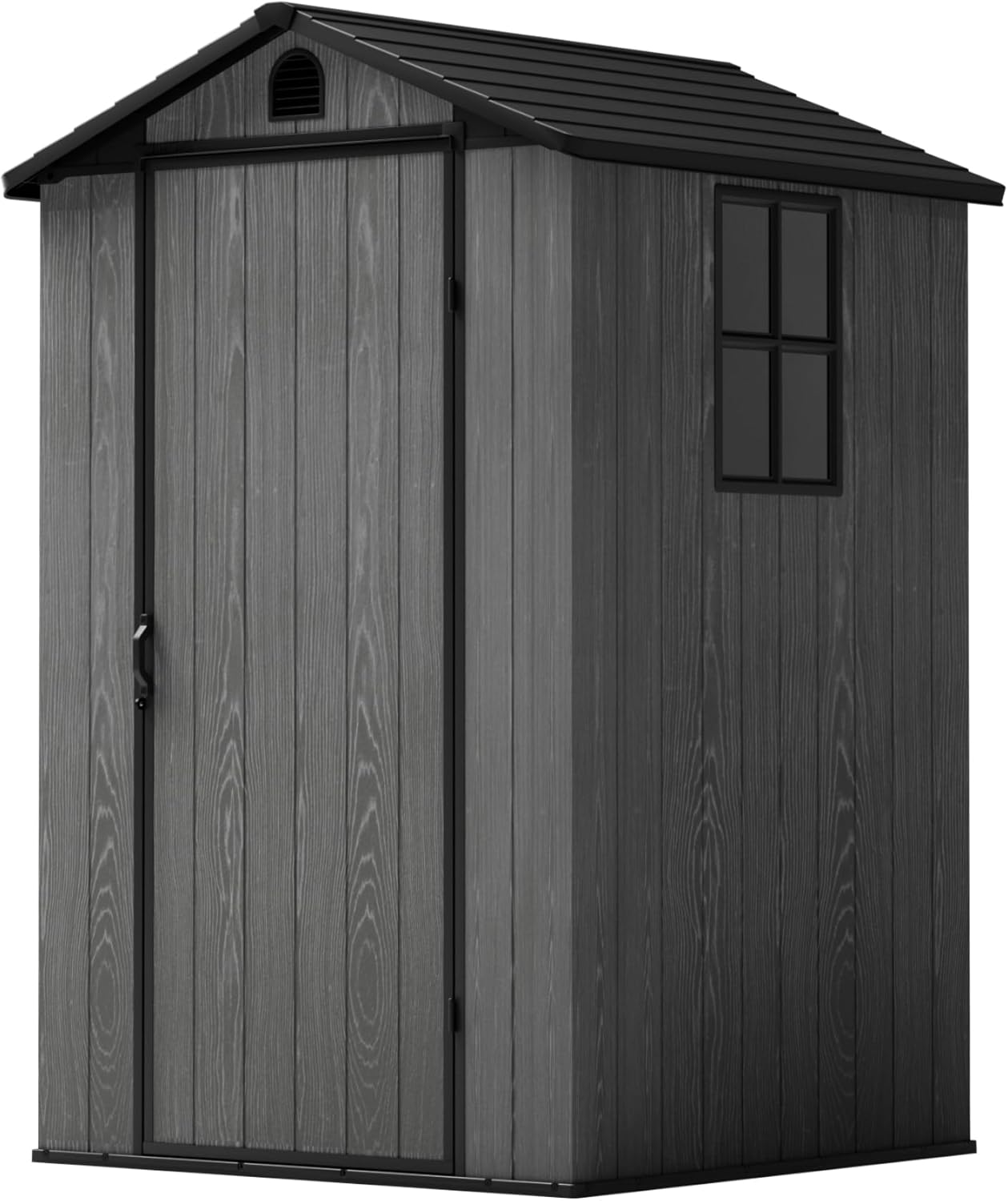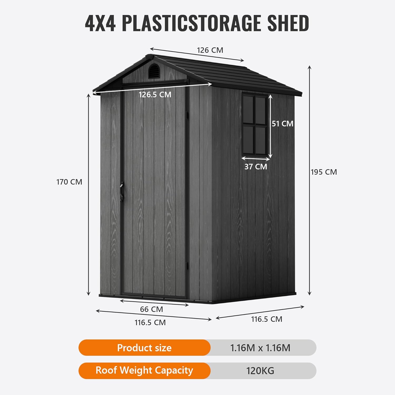 The Pro-Tect Essential 4’x4′ Plastic Resin Garden Shed with Integral Floor – Dark Grey is designed to protect your valuables with a weather-resistant enclosure, shielding your items from rain, snow, and the elements ideal for garden outdoor storage.
