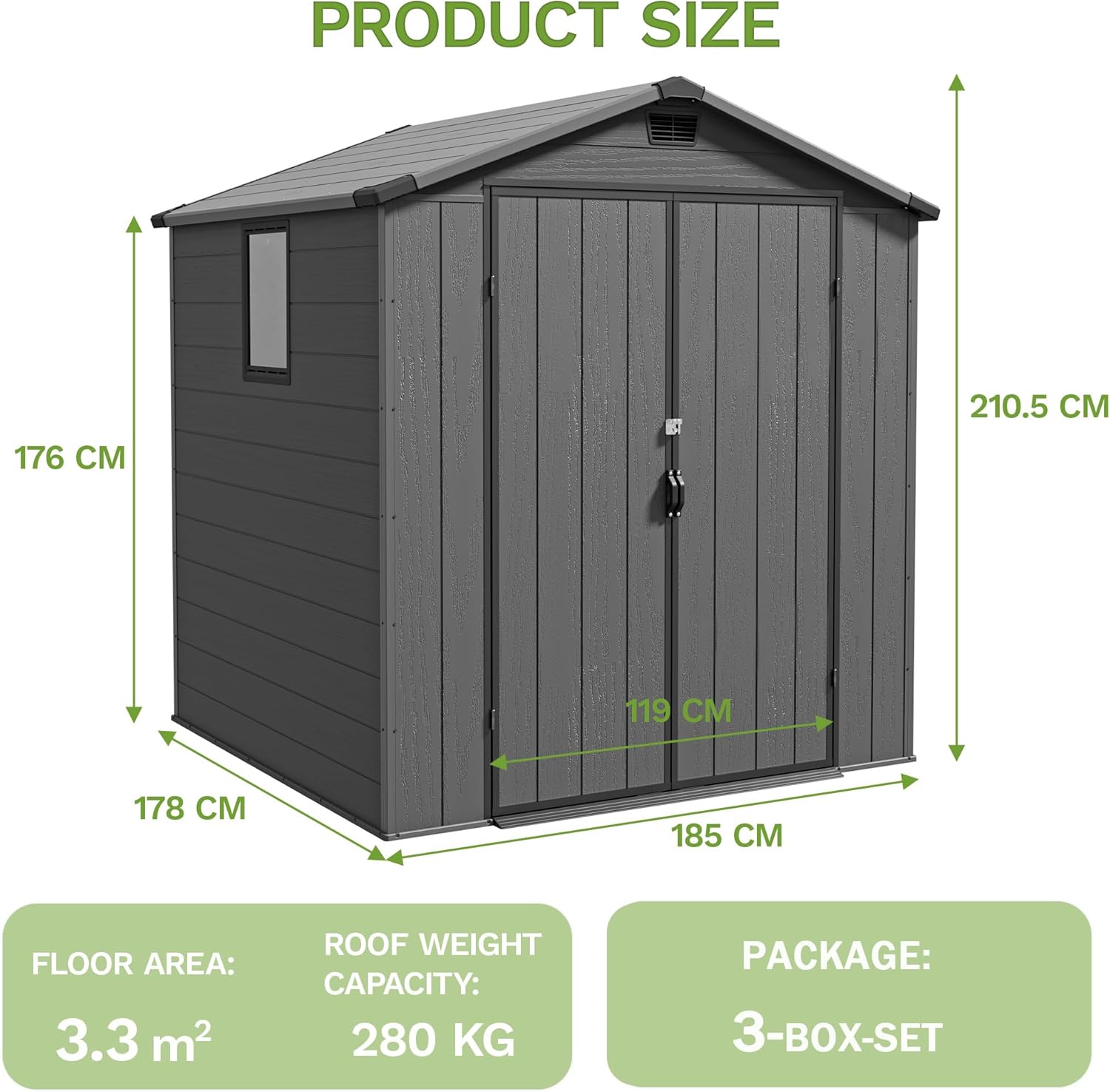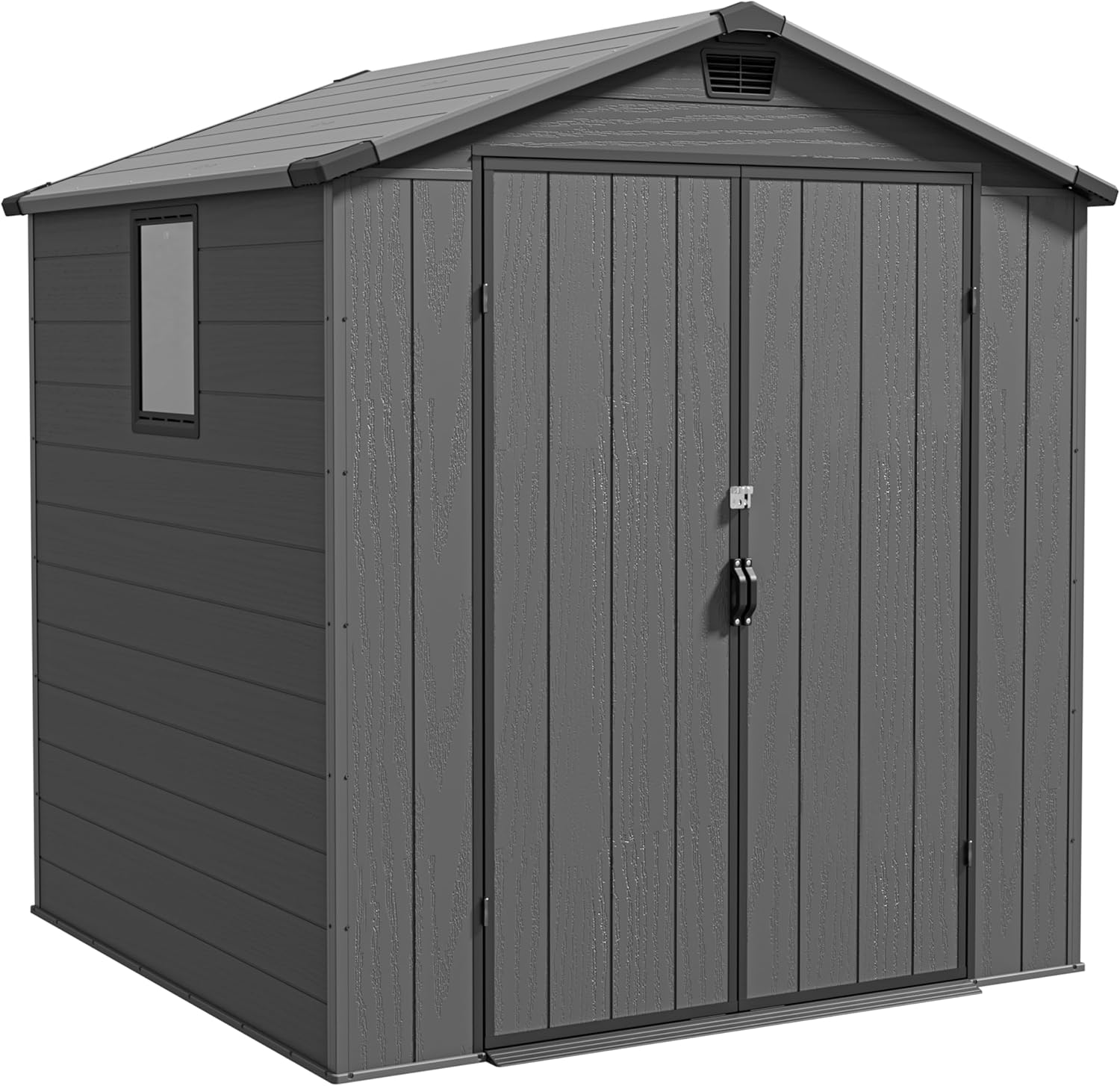 The Pro-Tect Essential 6’x6′ Plastic Resin Garden Shed with Integral Floor – Dark Grey is designed to protect your valuables with a weather-resistant enclosure, shielding your items from rain, snow, and the elements ideal for garden outdoor storage.