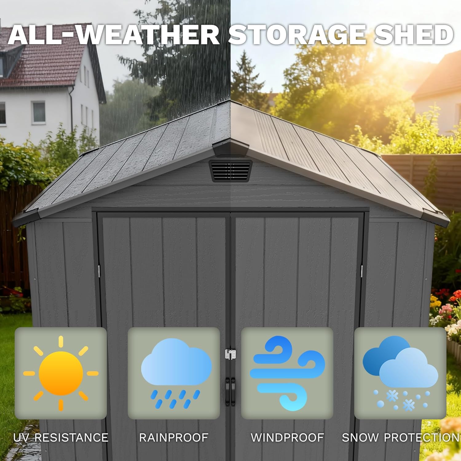 Crafted from heavy-duty resin panels, this shed offers exceptional resistance to rain, wind, and UV rays.