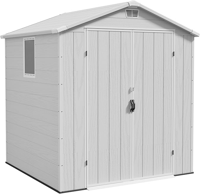 The Pro-Tect Essential 6’x6′ Plastic Resin Garden Shed with Integral Floor – Light Grey is designed to protect your valuables with a weather-resistant enclosure, shielding your items from rain, snow, and the elements ideal for garden outdoor storage.