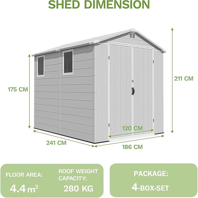 Crafted from high-quality, durable resin panels, this shed is built to last. It features a weather-resistant design that reliably protects your belongings from the British rain and wind, ensuring year-round durability without the risk of rust or rot.