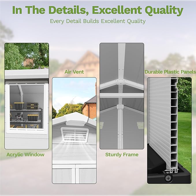 Crafted from heavy-duty resin panels, this shed offers exceptional resistance to rain, wind, and UV rays.