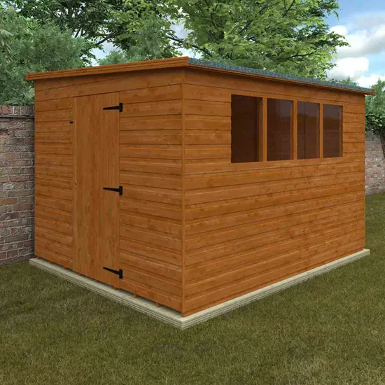 The Pro-Tect Timber 10’x8′ Lean To Pent Shiplap Shed (Window or Windowless) is a popular variation of the classic styled pent shed, with the door in the gable end.