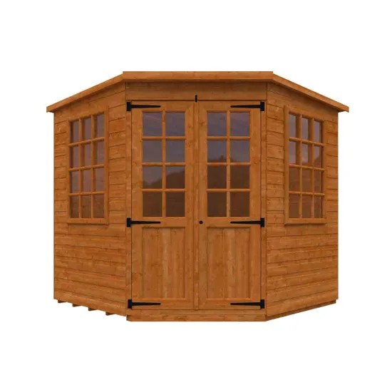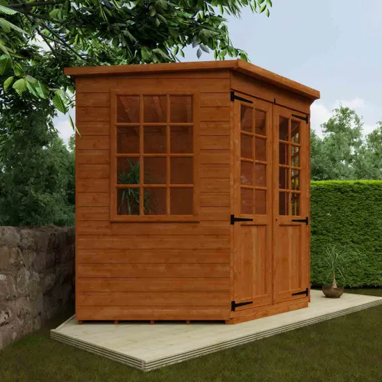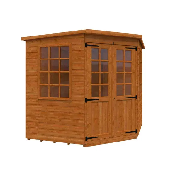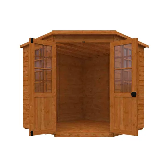 Featuring Georgian-style windows and double summerhouse doors, this pentagon-shaped retreat maximizes space and natural light. Crafted from durable 12mm tongue & groove timber with a Burnt Orange finish and grey mineral felt roofing, it?s ideal for a garden office, hobby room, or relaxing hideaway. Combining elegance, practicality, and long-lasting durability, it?s a perfect outdoor sanctuary.