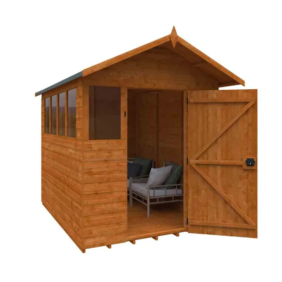 The Pro-Tect Timber 8’x6′ Shiplap Cabin Shed is an economy-styled summerhouse comes as standard with door centrally situated in the gable front end with a window either side.