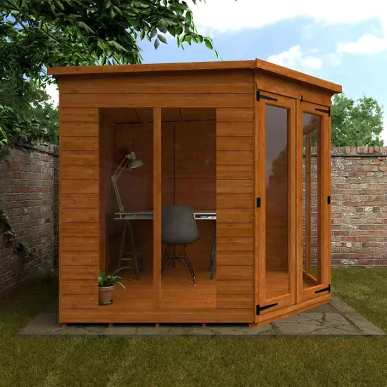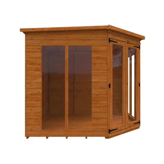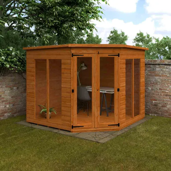 The design makes it well suited to the corner of your garden, allowing you to save space whilst enjoying the view. The full pane double doors and windows allow in maximum light and provide an excellent panoramic view of your green space.