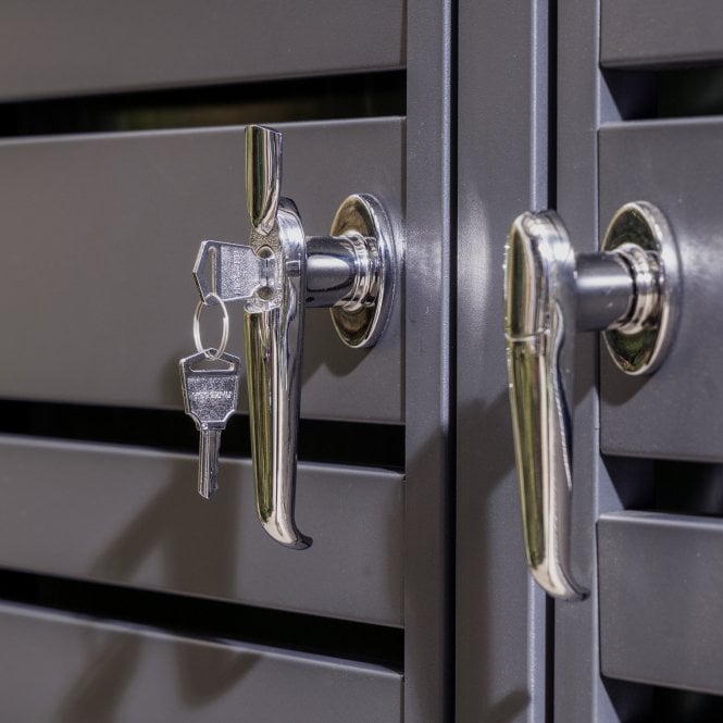 Ideally sized to hide away two standard 240 litre wheelie bins, the Chelsea Double Bin Store is finished in a striking anthracite with horizontal slats, combining style with practical outdoor storage.