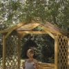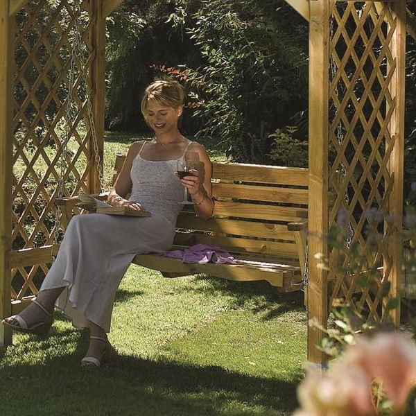 In the style of a classic wooden arbour, this Rowlinson Dartmouth Swing Seat Timber Arbour gives you the best of both worlds. You can relax in the garden on the pretty seat, which is attached with metal chains for a smooth swinging motion, while shielded from the sun thanks to the apex roof. You can also enjoy the attractive aesthetic of the swing seat, which features not only a decorative curved roof, but delicate lattice panels. These can either stay as they are in all their natural charm, or have climbing plants added to them for a lusher look.