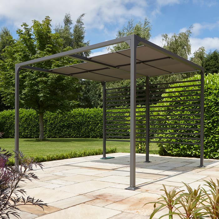 Transform your outdoor space with this sleek, modern and stylish canopy. With aluminium construction, the free-standing powder-coated frame boasts independent sliding shade panels and weave canopy fabric to ensure that your plans always remain weatherproof.