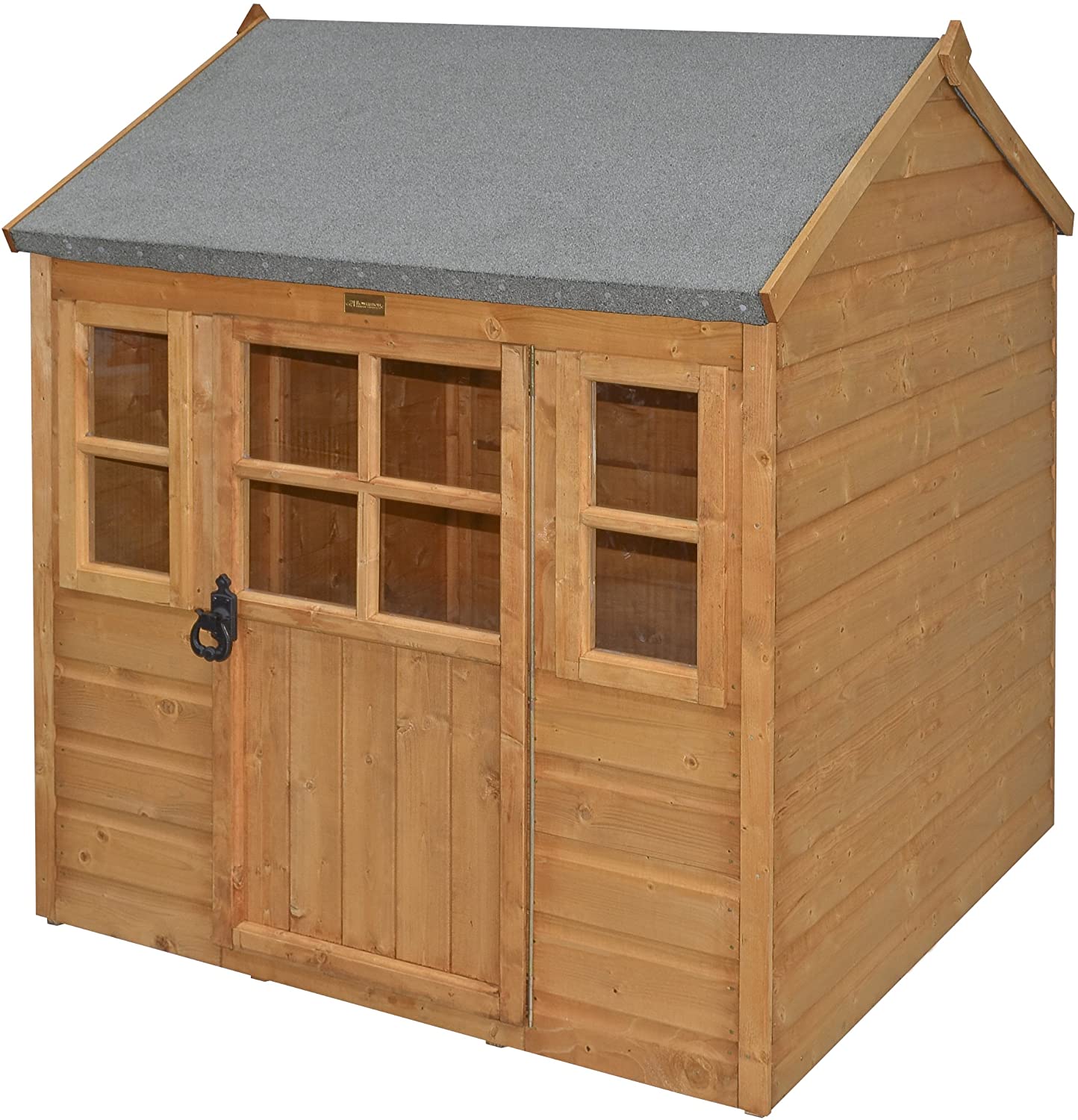 Rowlinson are known for their wide range of garden buildings which marry quality to affordability and the Rowlinson Timber 4′ x 4′ Little Lodge Playhouse is no exception. The building features quality materials in an attractive design and is one of the most popular and widely available playhouses in the 4′ x 4′ category. With its half glazed wooden door and twin windows, all in a Georgian style, the Little Lodge wooden playhouse is both an outdoor haven for children and a visual asset to the garden – definitely one to consider.