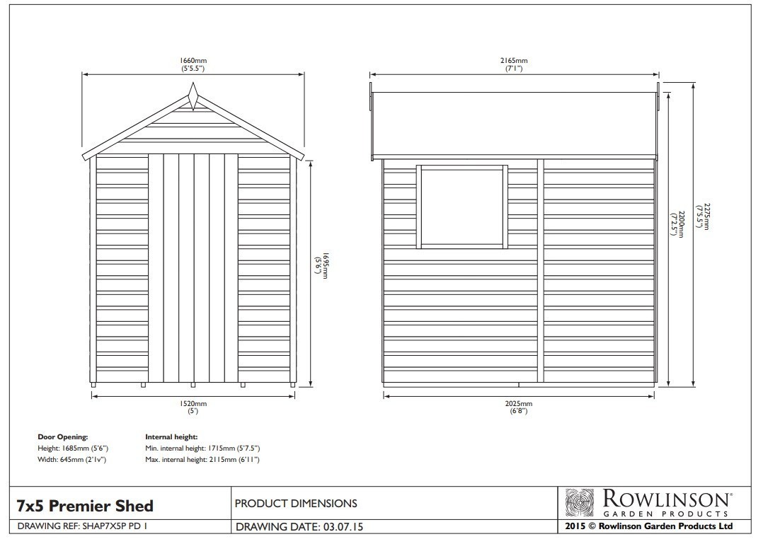 Rowlinson Timber 7’x5′ Premier Apex Shed