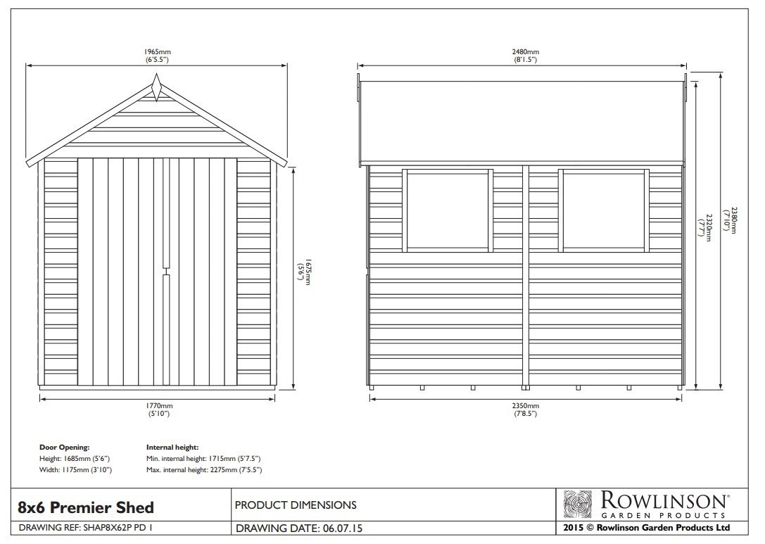 Rowlinson Timber 8’x6′ Premier Apex Shed