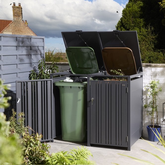 The Rowlinson Wimbledon Metal Double Bin Store – Anthracite is a stylish and contemporary storage space to stow away your unsightly yet essential wheelie bins.