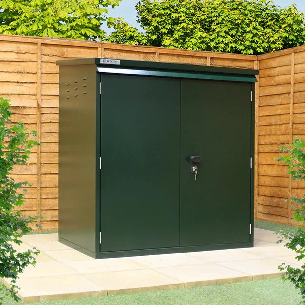 Designed and made in the UK, this 3 x 4 is built from very thick, heavy-gauge galvanised steel panels, including a heavy-duty Integrated metal floor. The large double door makes for lockable easy access.