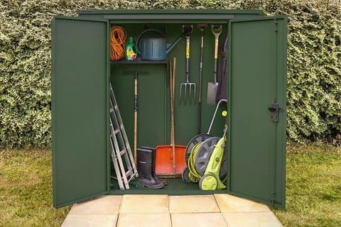 Designed and made in the UK, this 6 x 3 is built from very thick, heavy-gauge galvanised steel panels, including a heavy-duty Integrated metal floor. The large double door makes for lockable easy access.