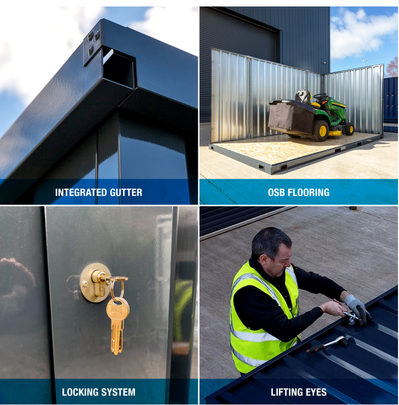 Fully galvanised steel construction with powder coat on top protects the store from corrosion