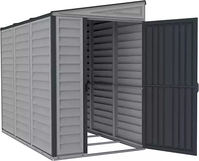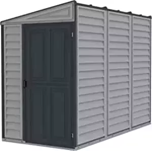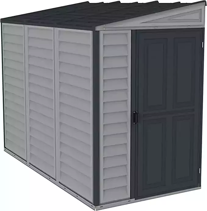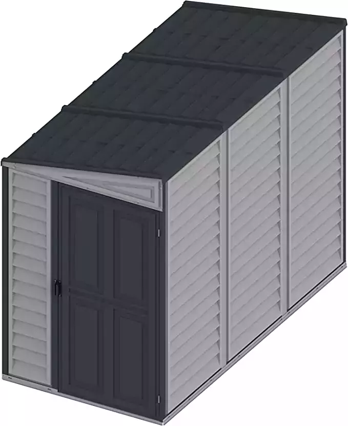 The New Saffron Sidemate Plus Vinyl Lean To 4×8 Shed – Grey is ideal for beside the home or garage and offers excellent storage facilities .