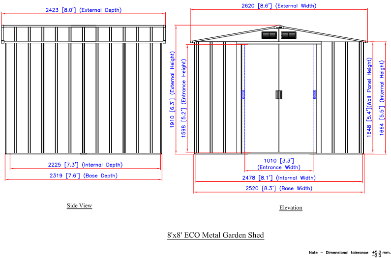 The Sapphire Metal Garden Shed is constructed with 0.33mm ribbed metal. It also uses a grooved wall design for even greater strength. The steel is hot dipped galvanized to prevent deterioration. Everything is pre-cut and pre-drilled for ready assembly .