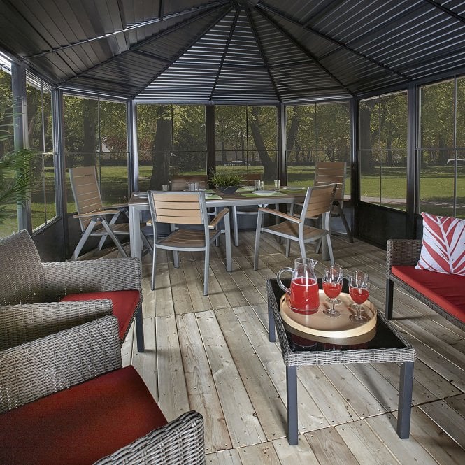 Transform your outdoors with the Sojag Charleston 12’x18′ (3.7m x 5.5m) Metal Solarium.