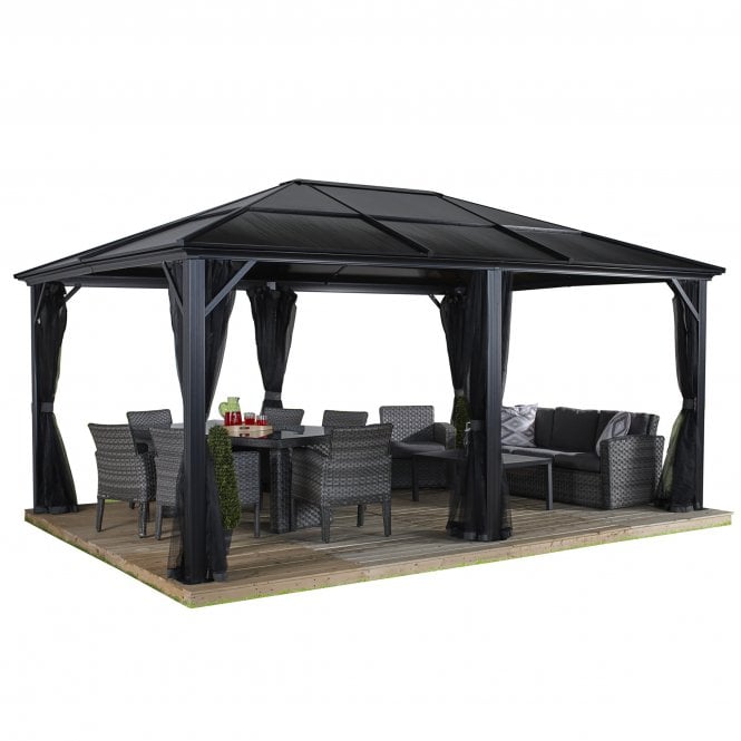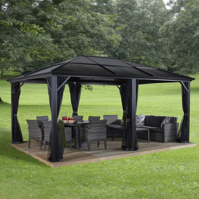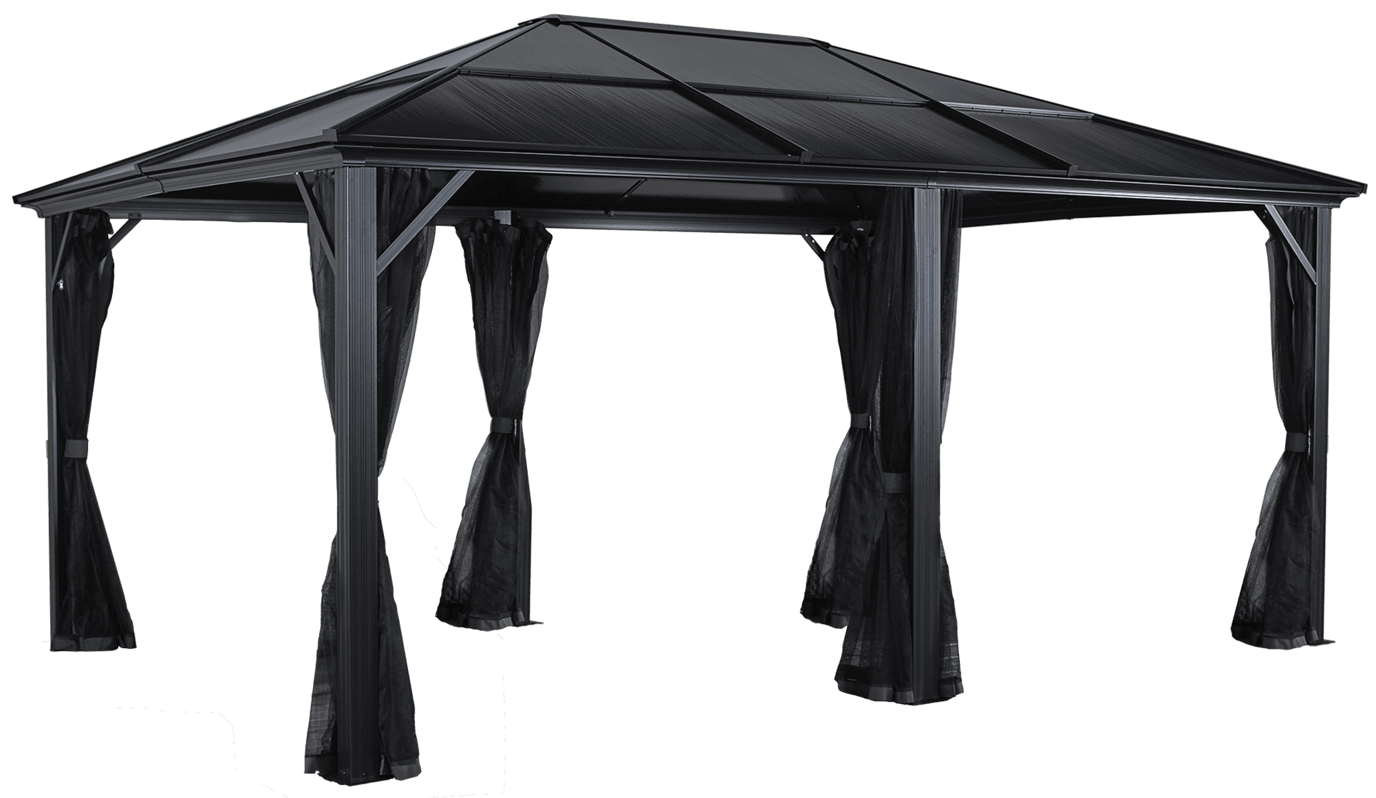 The Sojag Meridien 12’x16′ (3.7m x 4.9m) Aluminium Polycarbonate Gazebo is a blend of classic and modern gazebo design.