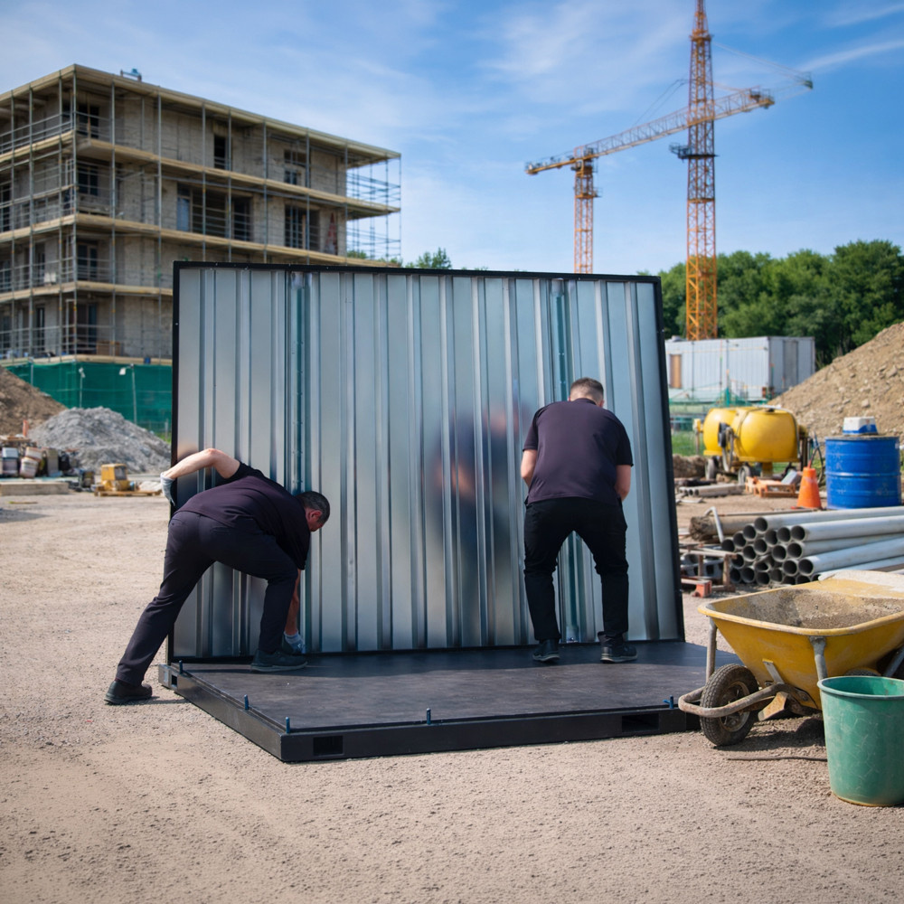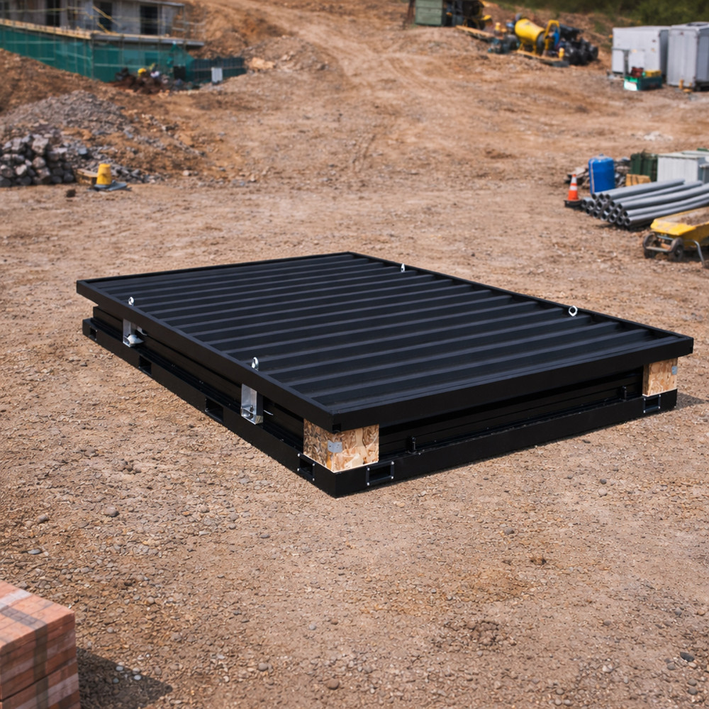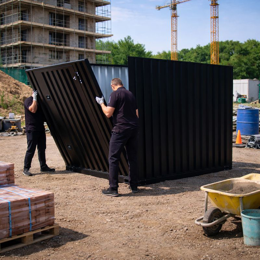 Each SITESTORE® unit is delivered flat-packed with all necessary fixings. The system features friction-fit corners and 24 simple clips, ensuring a secure structure. Eight carry handles are built into the base for easy maneuvering, and the larger forklift pockets and four roof lifting points make transportation straightforward and safe. The flooring is elevated to 82mm and finished with anti-slip, water-resistant OSB phenolic coating for added durability and protection.