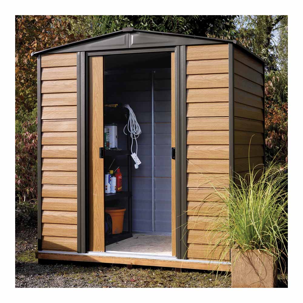 Woodvale 6×5 Metal Apex Shed – Wood Effect