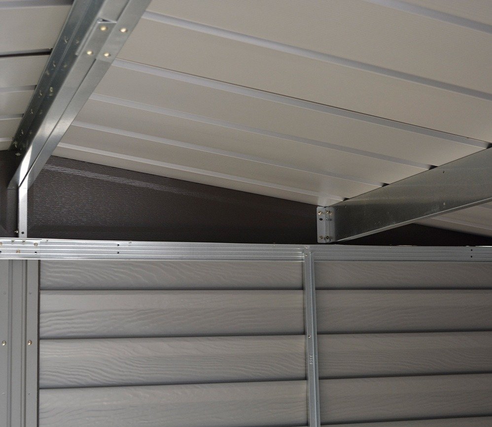 The  Woodvale 6×5 Metal Garden Shed features attractive wood grain panels with lockable sliding doors for extra security. With a Coffee brown trim it enhances the look and offers an attractive and low maintenance storage solution for any garden. Made from high quality materials which offer long lasting durability, this product is also fireproof and rot resistant.