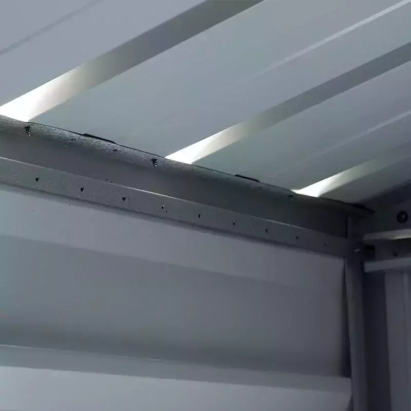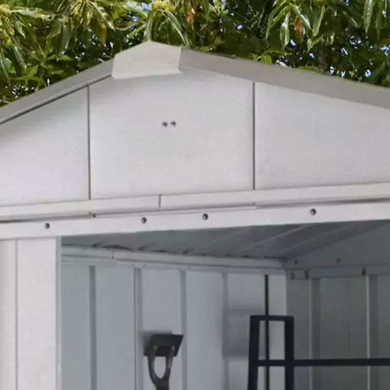 Made of high-strength, hot-dipped galvanised steel with enhanced resistance to corrosion, warping, swelling and blistering, this metal garden shed is maintenance-free. The permanent, resin-coated finish requires no touch-ups, rust-proofing or application of any preservatives. Other than the occasional cleaning, it takes care of itself and your belongings.