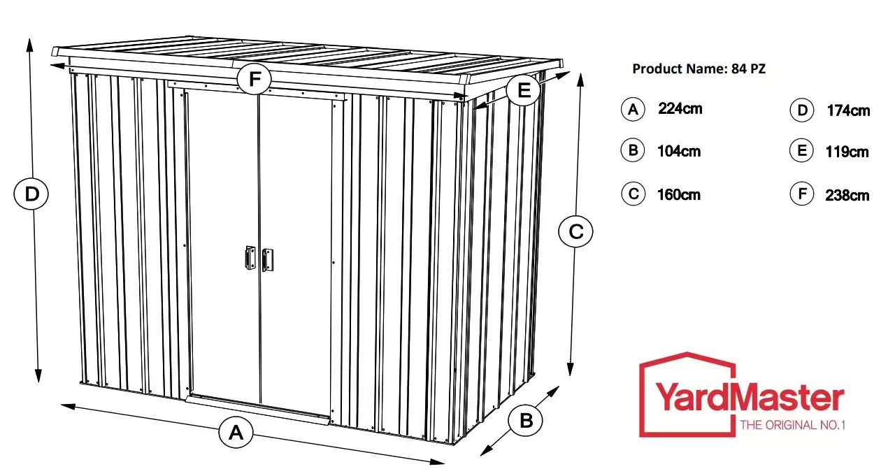 Highly fire resistant and safe to locate close to your home, the inside is easily accessed using the 2 sliding doors (79cm wide opening) which can also be secured by a padlock (padlock not included).